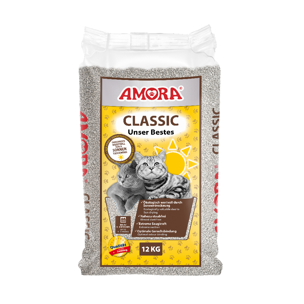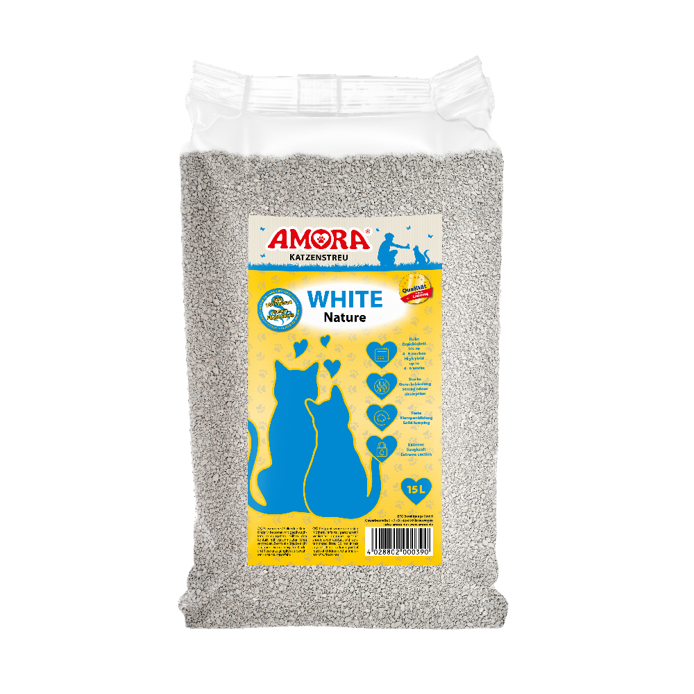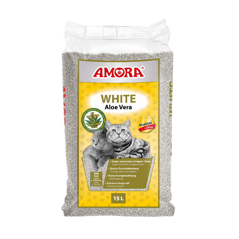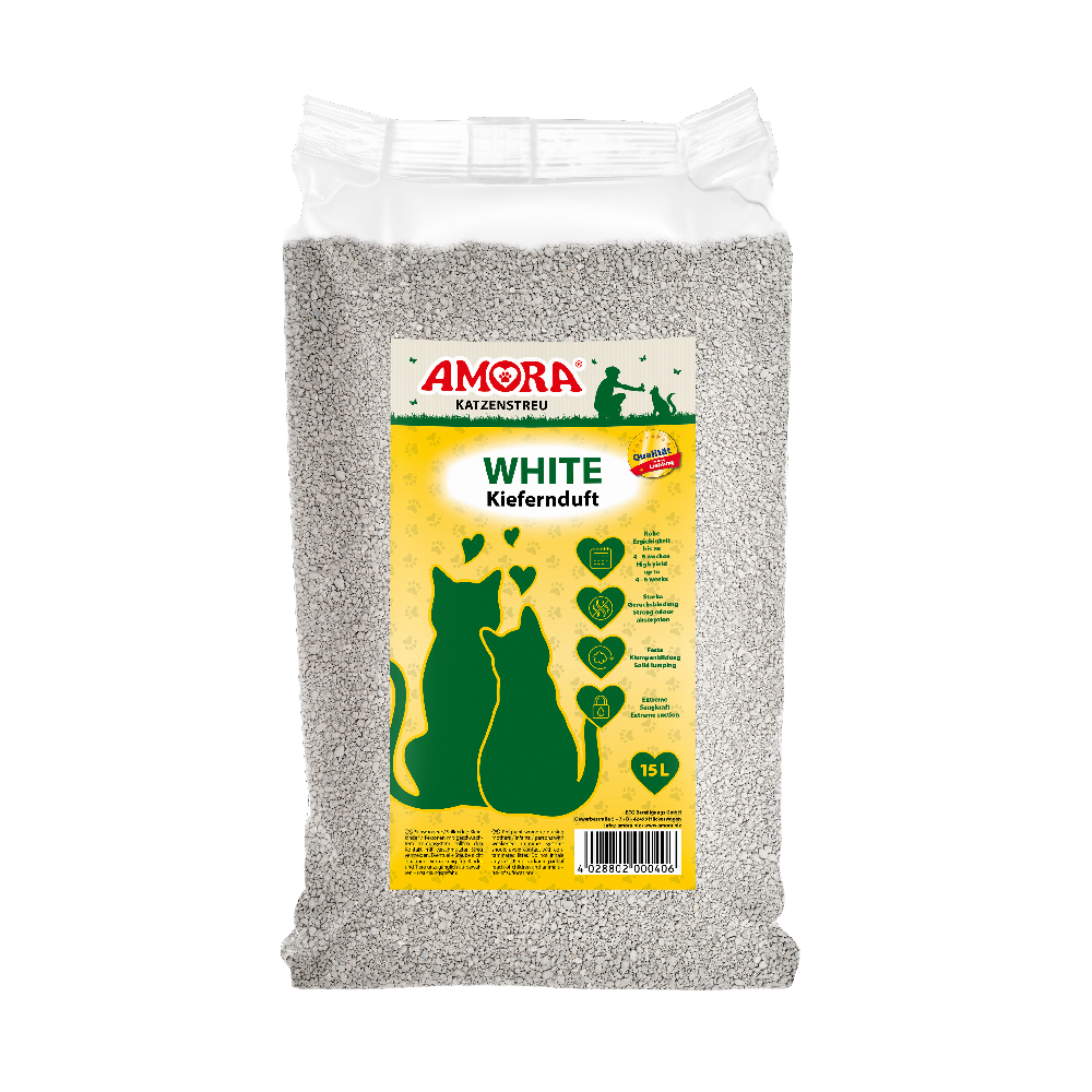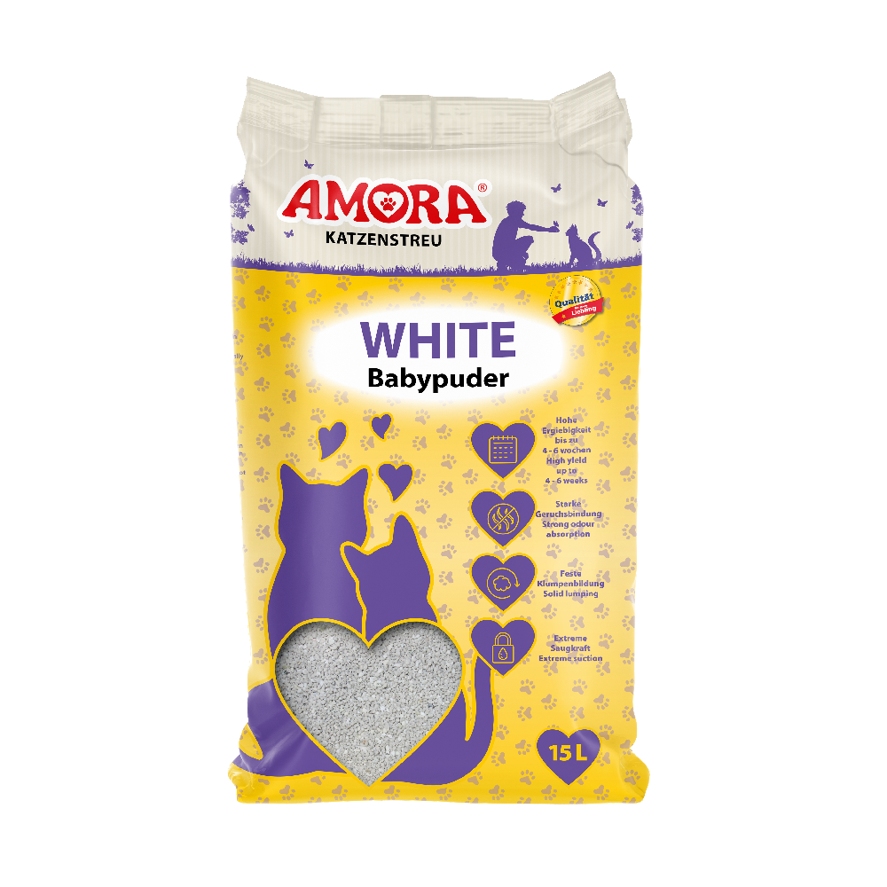 AMORA Katzenstreu ist in verschiedenen Varianten erhältlich – mit feinem Babypuderduft, Aloe Vera, Kiefernduft oder ganz ohne Duftstoffe. So findet jede Katze genau das, was ihr gefällt.
